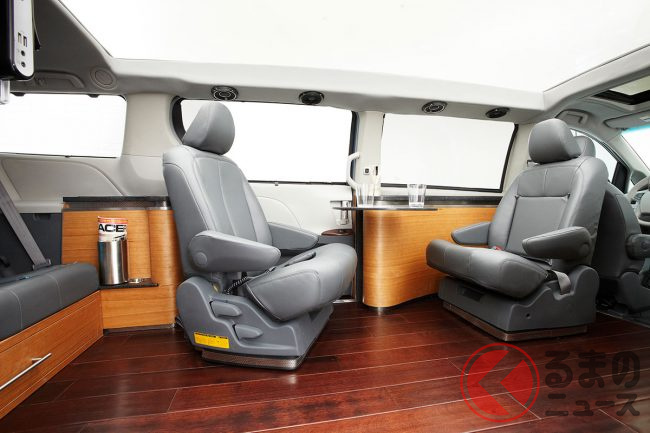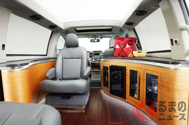 さらに、電動レッグサポート付きの専用「スーパーエグゼクティブシートシステム」を標準装備し、格納式ウッドテーブルやバイブレーション機能などをもたせました。