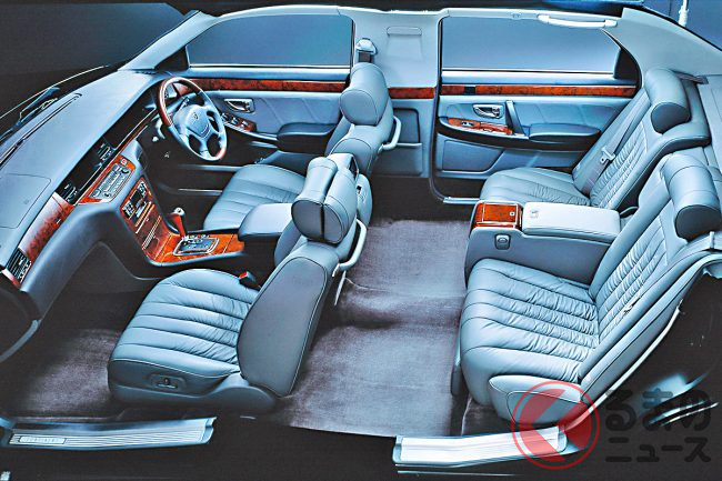 1000万円級! 全長5.3m超え「超豪華内装」採用! 三菱「最高級セダン」がスゴかった! 「ソファシート」にV8搭載の“激レアリムジン”とは