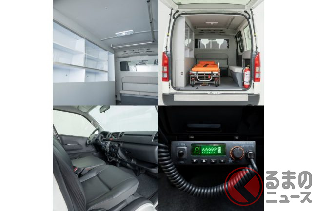 トヨタ「ハイエース」の特別仕様!? 激レアの「5MT×3000ccディーゼル」搭載! “赤いランプ”完備の謎仕様「Ambulance」比で発見