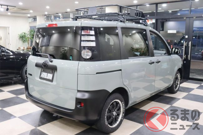 ベース車そのものが十数年落ちであっても、黒バンパーや黒ホイールなどでSUV風に仕立てることによって、新たな個性が引き出され、商品力のアップにつながっているようです。
