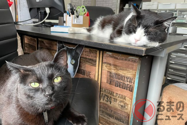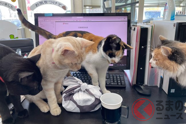 今後は、ネコが集まるプレハブ(を設置したり、ネコの缶バッジを販売したりなど、中古車販売以外にもユニークな事業をおこなうようです。