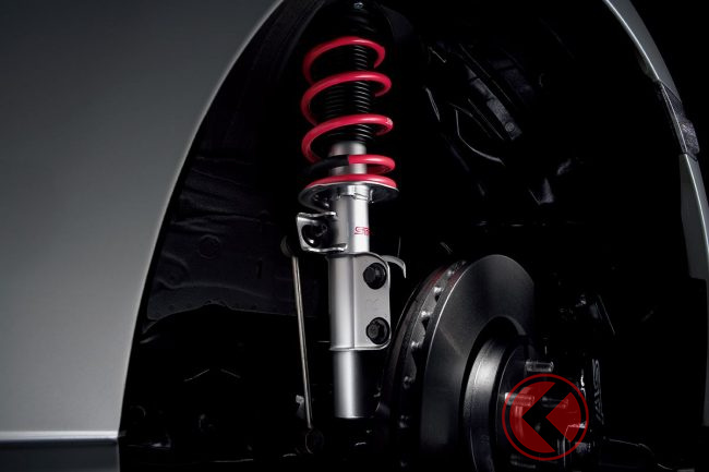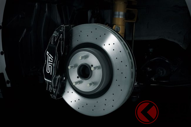 気持ちの良いハンドリングを実現するとともに、ブレンボ製ベンチレーテッドディスクブレーキや18インチアルミホイール、STI製フロントアンダースポイラーの採用により走行性能も向上しました。