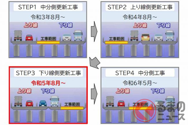 NEXCO西日本は、車線規制期間中は新名神高速などへの迂回や利用時間の変更をするよう呼び掛けています。