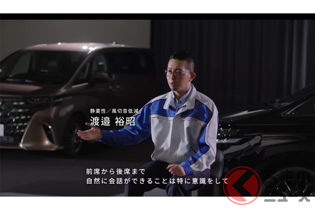 動画では、6月21日にフルモデルチェンジされたばかりのミニバン「アルファード/ヴェルファイア」について、開発者やエンジニアなどがこだわったポイントなどを紹介しています。