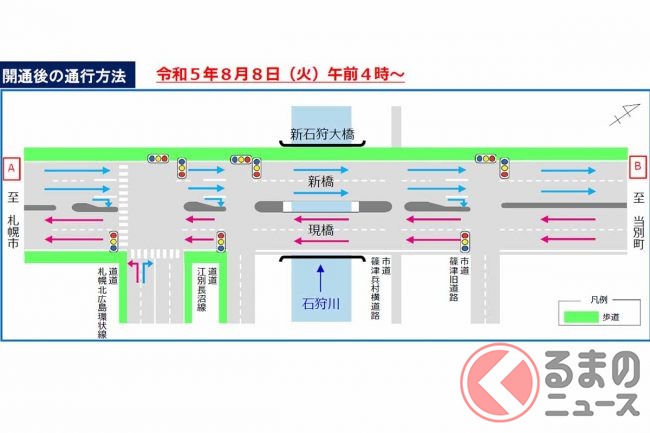 国土交通省北海道開発局は2023年7月28日、国道275号の新石狩大橋を含む1.8km区間が8月8日朝4時に4車線化する発表しました。