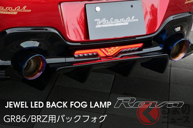ヘッドライトやテールランプなどの灯火類を扱うVALENTI JAPANは、2023年1月開催の東京オートサロンで展示した、トヨタGR86(ZN8)、スバルBRZ(ZD8)用の「ジュエルLEDテールランプULTRA」と「ジュエルLEDバックフォグランプREVO」を発売しました。両製品は1年保証が付帯し、保安基準にも適合しているとのことです。