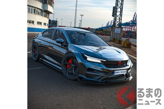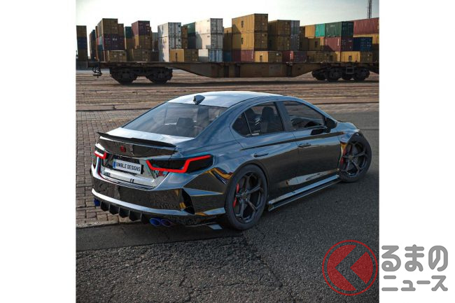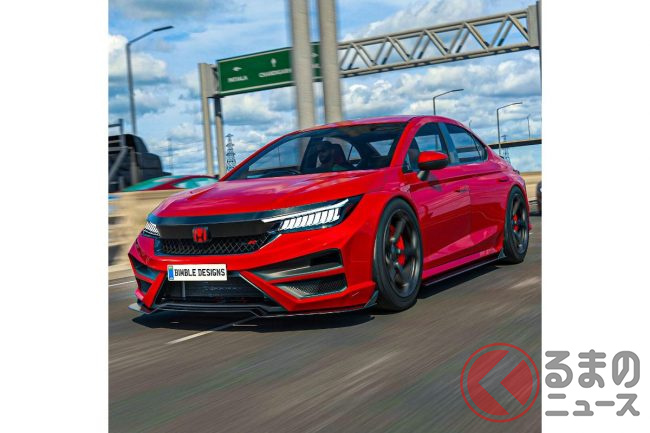 ホンダ新型「シティ」に「タイプR」!? ド迫力ワイドボディ&4連マフラーがカッコイイ! 「爆速コンパクトセダン」のCGをカーデザイナーが公開