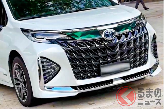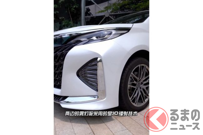 その中で紹介されたのは、歴代モデルを通して拡大し続けている新型アルファードの大型グリルをも超える大きさのグリルを装着したシエナです。ヘッドライトまで食い込んだグリルやバンパーの左右に配された開口部がさらに、アルファードを想起させます。