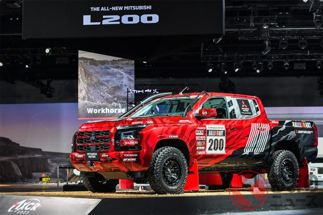 三菱は2023年7月26日、約9年ぶりに「トライトン」をフルモデルチェンジし、タイで世界初公開しました。日本でも発売予定のニューモデルですが、発表会場には一風変わったレーシングカーが展示されていました。