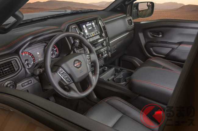 タイタン2024年型の標準モデルである5.6リッターV8ガソリンエンジン車は、クラス最高の標準出力400馬力と413lb-ftのトルクを発揮。Android AutoやApple CarPlay、先進運転支援システムの「日産セーフティシールド360」も標準装備です。