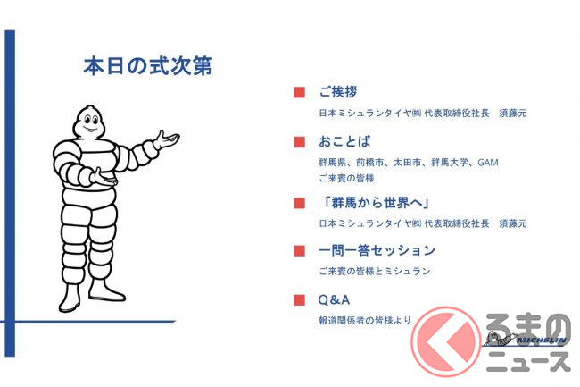 須藤氏は閉会のあいさつで「県内の皆さまからのメッセージに、『車が大好きなのでミシュランが群馬に来てくれてとてもうれしい』との声や、『新世代タイヤに期待している』という声があった。私たちを温かく歓迎してくださる群馬の皆さまのご期待に応えたい」と感謝と決意を述べ、会見を締めくくりました。