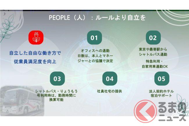 報道陣から、移転・統合によるコスト削減効果について聞かれた須藤氏は「今回の移転では新宿区(の本社)から100人が異動対象となったが、皆が太田市に引っ越せるわけではなく、(シャトルバスや特急通勤など)いろいろな施策を取り入れているため、コスト面の低減は大きくない」と回答。「(新型)コロナ前は出社が当たり前。コロナ後はリモートが当たり前になったが、フェース・トゥー・フェースで皆がいろんな意見を言って、発見があることの大切さを改めて感じた。みんなで1カ所に集まってコラボというところを実現したかった」と、コスト面よりも社員同士の連携強化が移転・統合の主目的のひとつであることを強調しました。