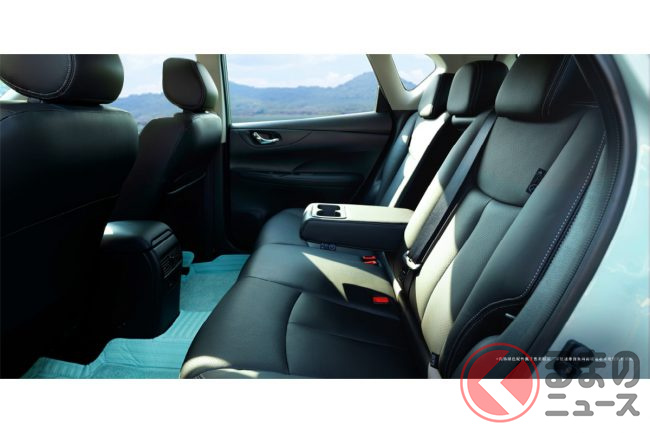 日本で販売されているノートよりも全体にひと回り大きく、上位クラスに匹敵する余裕タップリな広い室内空間を特徴としているのは初代同様です。