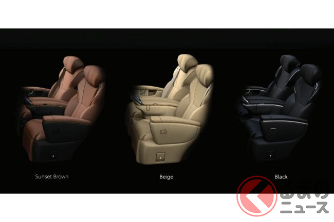 また、日本の新型ヴェルファイアの内装色は、ブラックもしくはサンセットブラウンのみですが、インドの新型ヴェルファイアはこれらに加え、日本ではアルファードのみに用意されるニュートラルベージュが用意されます。