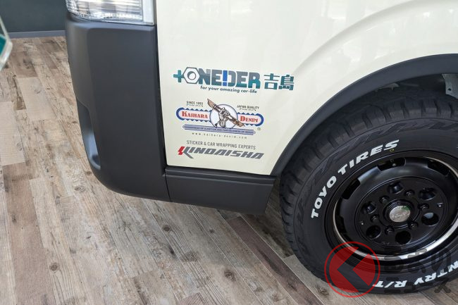 広島トヨペットは、トヨタ車のディーラーを営むと同時に「+ONEDER吉島(プラスワンダーヨシジマ)」というハイエースを中心に取り扱うカスタムのプロショップを併設しており、休日を楽しむキャンピングカーや仕事で使い易くするためのカスタマイズなど、ユーザーのライフスタイルに寄り添った世界に一台のクルマを製造しています。