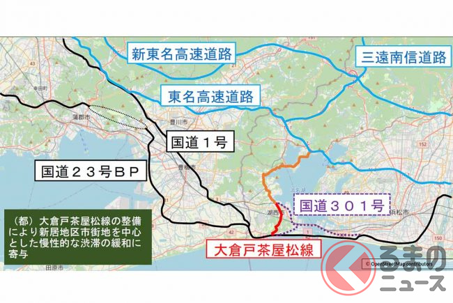 静岡県湖西市の都市計画道路「大倉戸茶屋松線」が、2023年9月30日に開通します。東名高速と、海岸部を走る国道1号バイパスを結ぶ南北軸が新たにできます。これに対しSNSなどではどのような反響があるのでしょうか。