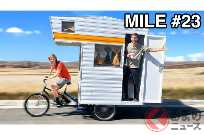 YouTubeチャンネル「Dangie Bros」は、ユニーク過ぎる車両や海の上に浮かべられるハウス型ボート、それに体を張った実験など、ジャンルも内容も多種多様な動画を展開しています。今回投稿されたのは、漕いで走るキャンピング自転車です。