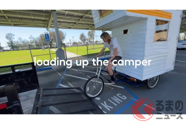 えっ…「キャンピング“チャリ”」爆誕!? 車内は意外と広い? 珍妙すぎる自転車で160km走破に挑戦! 結果は?