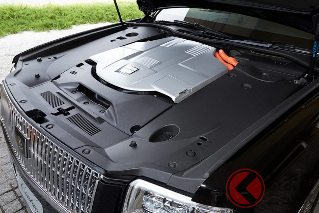 現行センチュリーは、同車初のハイブリッドシステムを搭載。5リッターV型8気筒エンジンと組み合わせることで、ショーファーカーに求められるスムーズで余裕の走りと高い環境性能を両立しました。