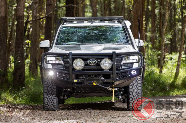 そのほか、川などを渡る際、エンジンに空気を取り入れるためのパイプ「シュノーケル」やウインチが装着されるなど、ランドクルーザー300ならではの悪路走破性をさらに向上させるようなワイルド風味の強い仕上がりになっています。