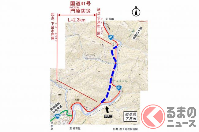岐阜県下呂市で、国道41号「門原防災事業」が本格着手を迎えます。どのように改良されるのでしょうか。