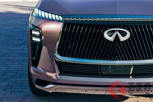新型「超高級SUV」世界初公開! 斬新ピカッと光る巨大グリル採用! 全長5m超えの「QXモノグラフ」の実車を米で展示