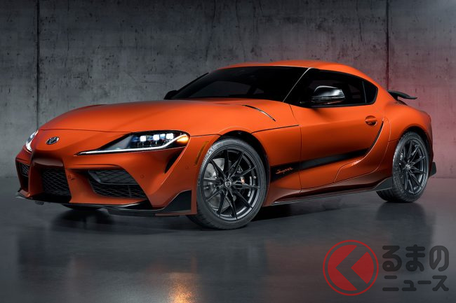 MTあり! 鮮烈オレンジのトヨタ“新”「スープラ」登場! ド迫力ウィング&“80スープラ”風デザインがイイ! 約934万円で米で登場