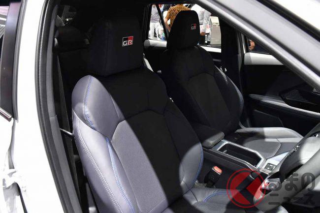 パワートレインはハイブリッド。内装はシート表皮やフロアマットなどGRスポーツ専用仕様のものが採用されており、引き締まった印象を与えています。