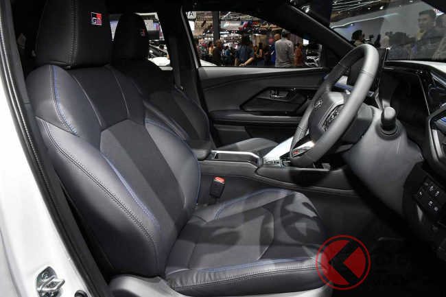 インテリアでは、スポーティな雰囲気を醸し出すとともに、高級感を与えるワイドでソフトなダッシュボードパネルを採用。シートなどには青いステッチが施され上質感を高めています。