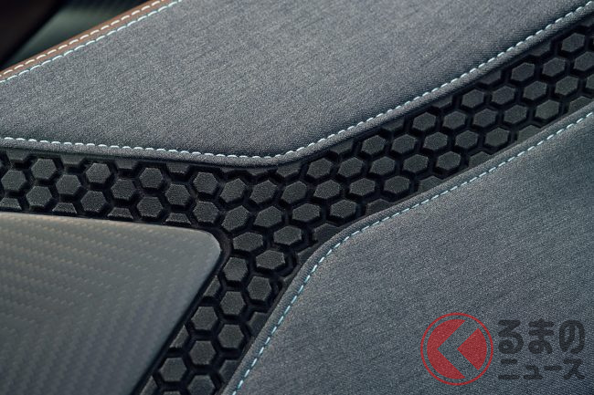 スポーツシートのフォームなど目に見えないプラスチックの多くは3Dプリントを用いた再生繊維で作られるほか、センターコンソールやドアパネルなどに使用されるカーボンも再生カーボンを使用しています。