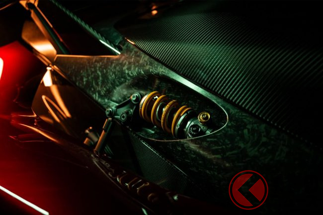 つまりミッドシップレイアウトで、そのシステム最高出力は1850馬力、最大トルクは1400Nm(推定)と途方もないエネルギーを発生します。大排気量でありながら、9800rpmまで回るというのも驚異的なポイントです。電気だけで走れる距離は最長35kmです。