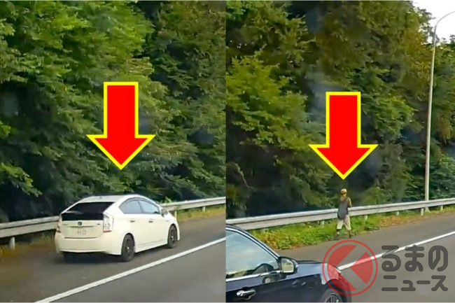 怖ッ! 「路肩ミサイル」や「高速を歩く歩行者」なぜ存在? ドラレコに映る2つの“カオス”な危険行為が話題に