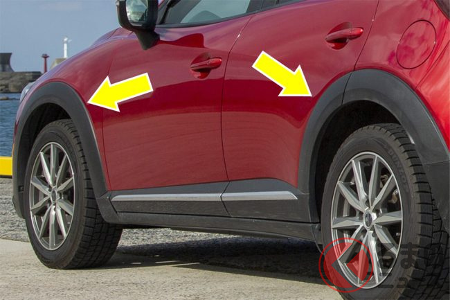 SUVなどではフェンダーアーチなどにも樹脂パーツが使われていますが、未塗装なので塗装面を気にする必要もなく、軽くて丈夫で扱いやすいというメリットがあります。
