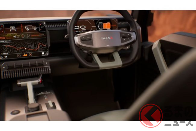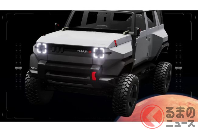 マヒンドラの「タール」といえば、ウィリス「ジープ」を起源に持つ本格SUVです。ジープが起源というだけあって、そのデザインが現在のシープ「ラングラー」のようなデザインとなっていることが特徴的ですが、同様の名称を持つ「Vision Thar.e」は、このタールの次世代型EVモデルと見ることもできます。