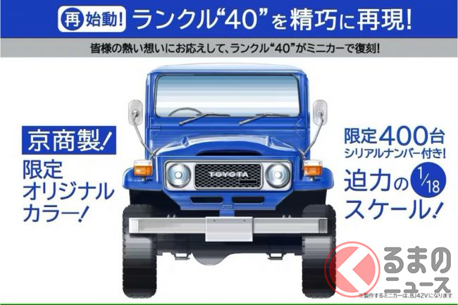 老舗ホビーメーカー「京商」とコラボ製作されたトヨタ「ランドクルーザー40系 1/18スケールミニカー」が400台限定で登場。ランクルブランドの原点である40系は、1984年に販売を終了してから2024年で40年の節目にディテールに拘ったミニカーとして復活しました。