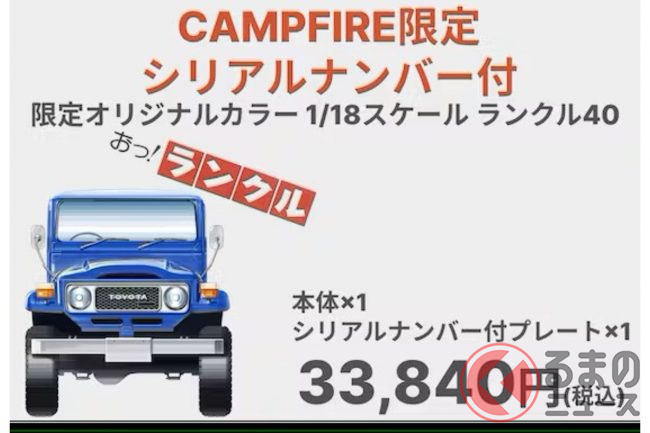 このミニカーは京商とのコラボで誕生したもので、クラウドファンディング「CAMP FIRE」において400台限定で販売されました。