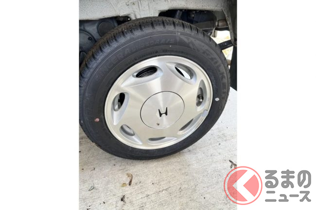 ホイールは14インチを装備していますが、標準装備のものとは異なるサイズ・デザインであることから、別のホンダ車のものが流用装着されているようです。