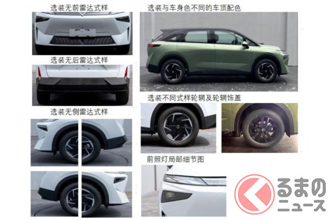 オプション装備の一部は添付されている画像で判明しています。前後左右のレーダーや、17/18/19インチのホイール、そしてルーフをブラックに仕上げたツートン仕様などが確認できます。
