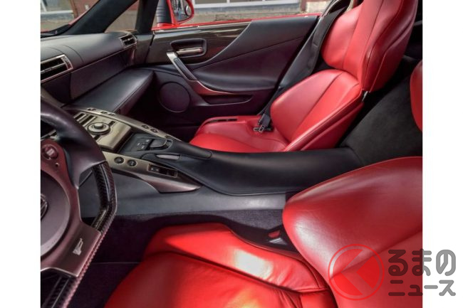 今回のオークションに出品されたLFAは、2012年に製造された427台目のモデルです。ボディカラーは濃い赤色を使用。20インチBBSアロイホイールを装備、空気力学に優れたボディーはカーボンファイバーにより軽量化されています。