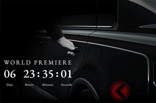 このティザー画像では、白手袋のドライバーが黒塗りのクルマの後席を開けようとドアノブに手をかけている様子が分かることから何らかのショーファーカーだと予想出来ます。