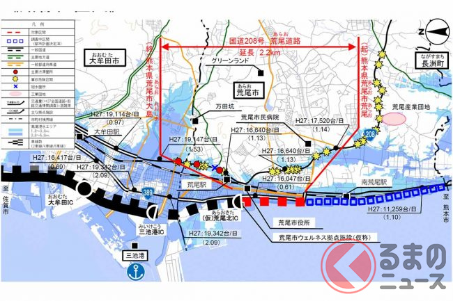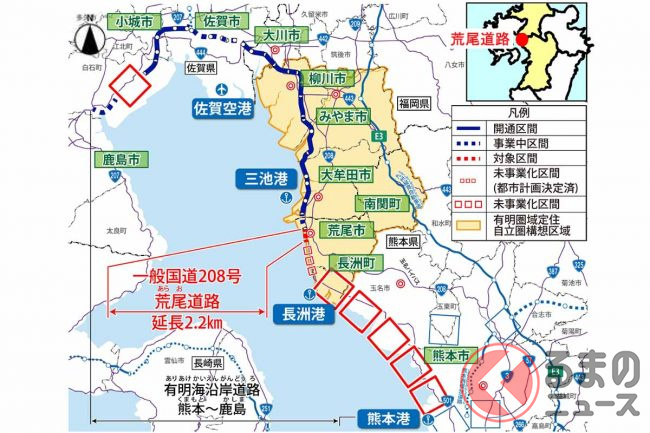 有明沿岸道さらに南へ! 国道208号バイパス「荒尾道路」が事業化 福岡&熊本県境で進む計画への反響は