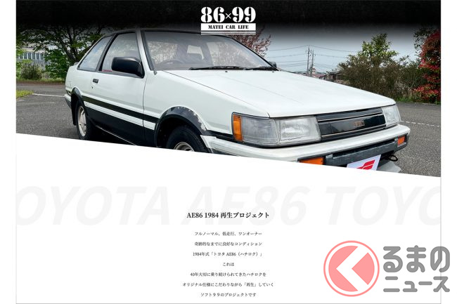 “ハチロク”は、年式が古いこと、モータースポーツでの人気により改造車や事故車が多いこと、海外での人気により高値で輸出されていったことなどから、状態の良い個体を見つけることが難しくなっていますが、今回本プロジェクトのベースとなる車両は“フルノーマル”“低走行””ワンオーナー”とまさに奇跡の1台と言えるレベルとのことです。