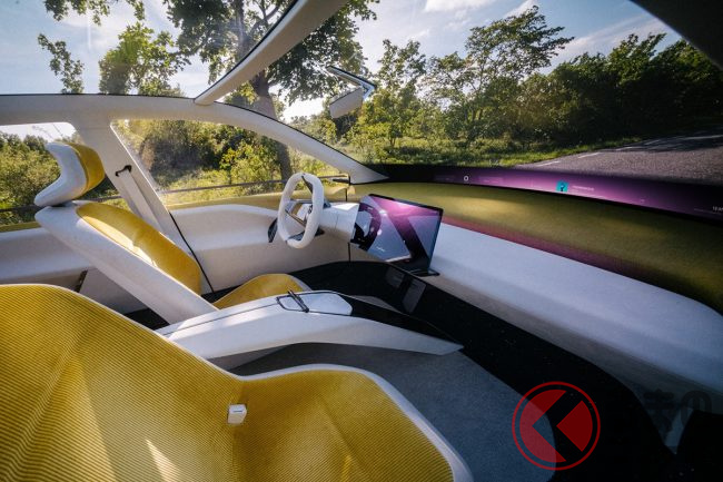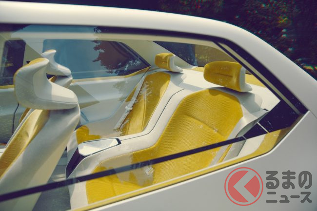 ビジョン ノイエ クラッセは、必要なもの以外をそぎ落とし、広々とした車体面と特徴的なラインによって、クリアなボディデザインを実現。キドニーグリルやホフマイスターキンク(リアウインドウからCピラー付け根の斜めに跳ね上げられたライン)などのBMWのデザインアイコンをより際立たせ、デザインに同社らしさを与えています。