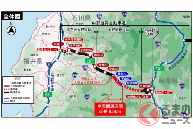 中部縦貫道「九頭竜IC」10月開通!「首都圏&中京圏~北陸」が時間短縮 残りの区間はいつ開通?