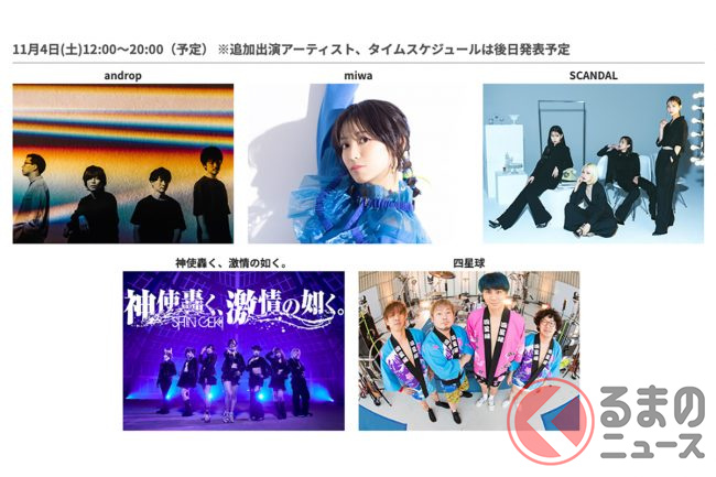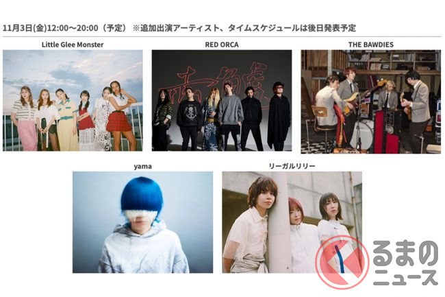音楽ライブステージでは、Little Glee Monster、miwaさん、MONKEY MAJIK、SCANDAL などをはじめとした人気アーティストが出演予定。また、11月2日には、日本最大級のジャパニーズヒップホップフェスティバルとの1夜限りの夢のコラボライブも開催される予定です。