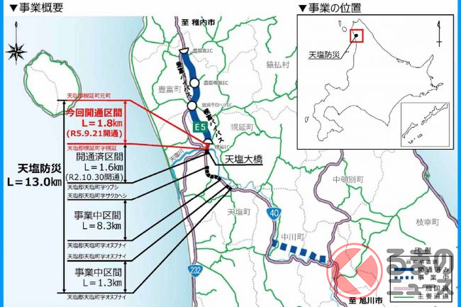 「最北行き」の国道40号が幌富バイパス直結! 旧国鉄の“遺産”活用した「天塩防災」が21日一部開通