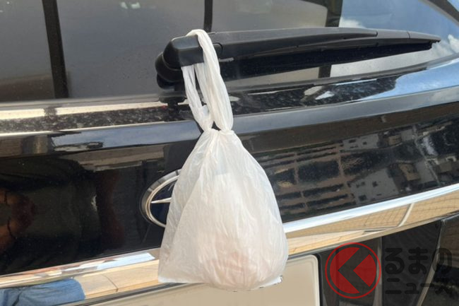 リアワイパーに「謎のビニール袋」ぶら下げて走っちゃダメ! 中身は何? 落ちたらいろいろヤバい訳