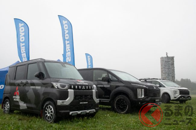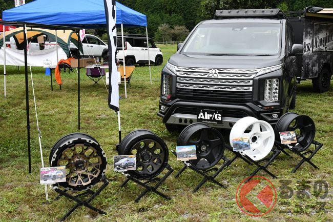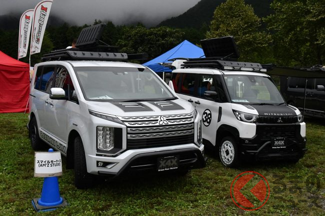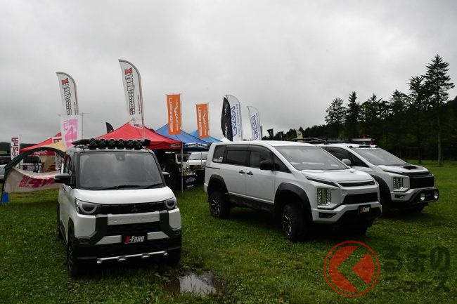 また会場では三菱にラインナップされている車種がさまざまな用品装着状態で一堂にそろっており、9月7日に発表されたばかりの「デリカミニ×Colemanコラボラッピング」仕様も早速展示。本車両はオートサロンでコンセプトモデルとして参考出品していたところ、多くの市販希望の声が届いたことを受けて、市販化に結び付いたとのことです。