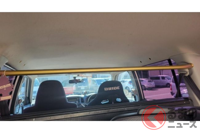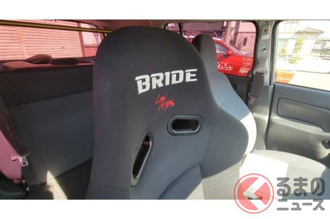 内装も、BRIDE製のフルバケットシートや、33パイバックスキンハンドル、ブリッツのタコメーターや水温計が装備され、もはや商用車とは言えない状況になっています。