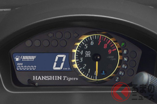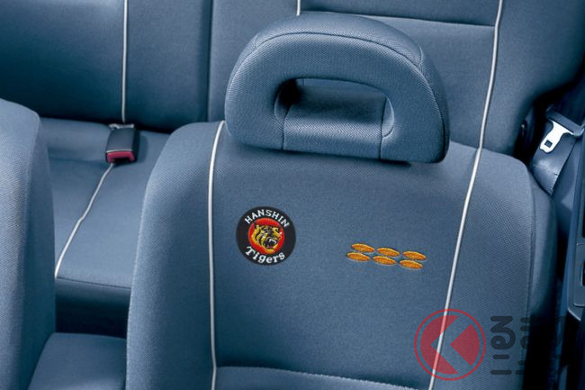 さらに、虎柄のリングで囲まれたタコメーターや、阪神マーク入り縦じまCD・MDプレーヤーを装備。前席にはセ・リーグ制覇記念タグがあしらわれ、ステアリングの前に「HANSHIN Tigers」を刻み込んだ光るネームプレートを採用するなど、阪神タイガース エディションシリーズでも最も気合の入った仕様でした。